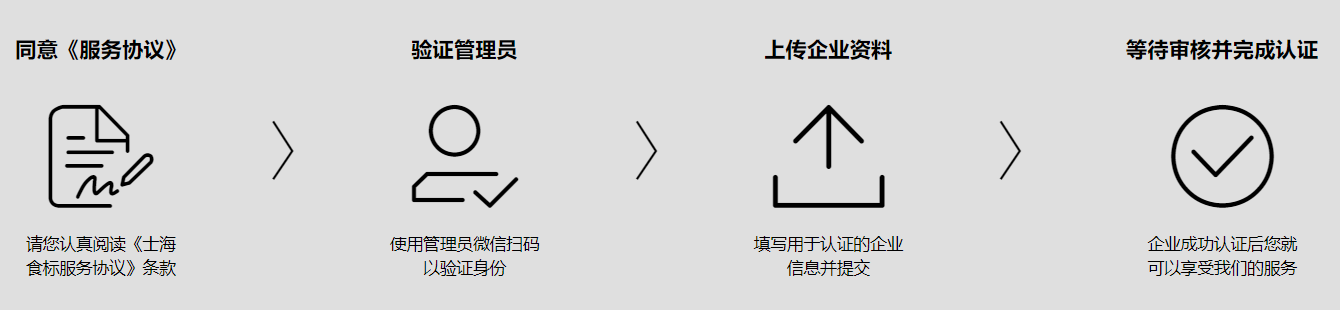 当我们的工作人员完成贵单位的企业认证后,您的微信将接收到认证结果(没有接受到任何信息时,请确认您是否关注了“士海食标”公众号),或者您也可登录到网站,进入企业信息中查看审核结果。一旦通过认证,将可以享受食标标签审核及相关服务。